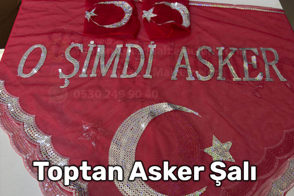 Toptan Asker Şalı – “O Şimdi Asker” Şalı ve Kına Eldiveni Seti